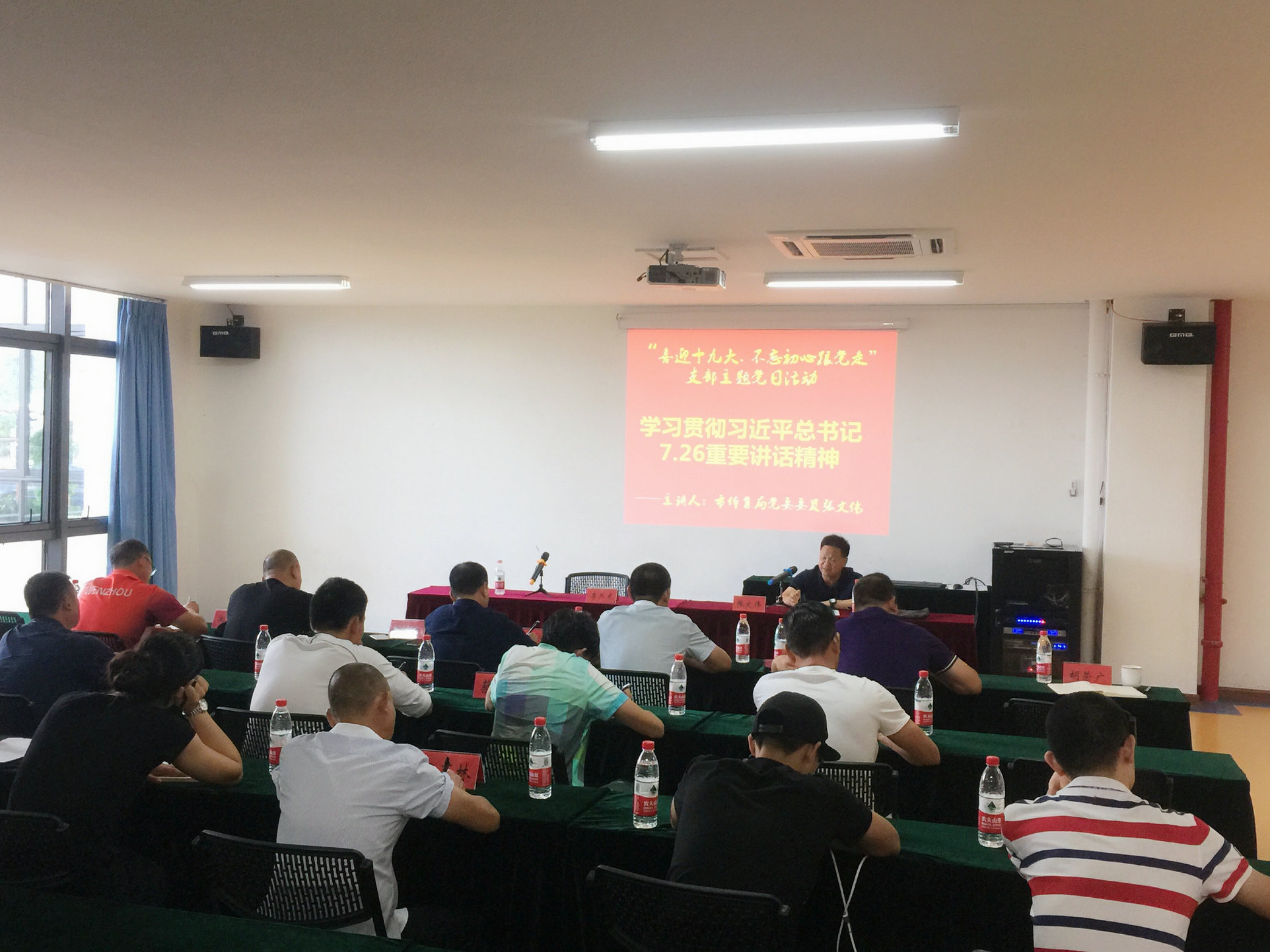 根据市体育局“两学一做”常态化制度化党员领导下基层讲党课工作安排,10月11日下午,市局党委委员张文伟来到温州市水上运动中心,以“学习贯彻习近平总书记7.26重要讲话精神”为题,做了一堂生动党课。温州市水上运动中心全体党员和职工参加了党课学习。 在党课中,张文伟同志主要围绕“爱国”和“爱党”两大中心思想,回顾建党建国的历史,分析现代背景下应该如何做一名合格党员,开展此次党课活动活动。张委员以生动的语言,并结合自身经历,由浅入深的就习近平总书记7.26重要降讲话精神向我们做了传递。在面临新的三情形势时,要深入分析和研究,作出准确及科学的判断,增加自身的忧患意识。在今后的工作中要始终坚持突出抓重点、补短板、强弱项,推进工作健康、有效的开展。 通过此次党课的学习,不仅使广大职工了解习近平总书记7.26重要讲话的精神实质,更重要的是还让大家的思想和行动形成统一,有效的将此次的精神落实到工作之中。积极备战2018年省运会,为温州体育争光。