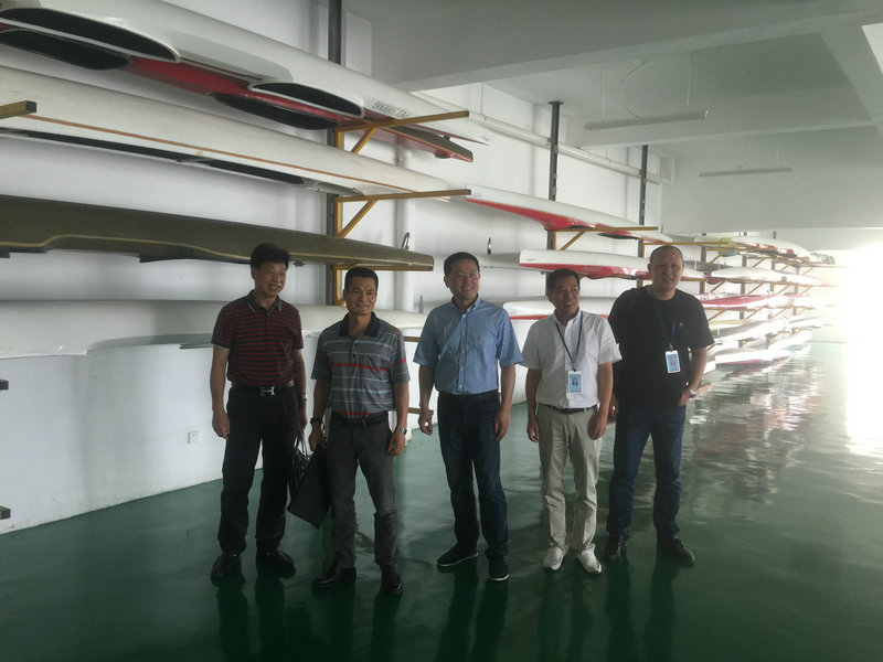 6月9日上午,温州市委宣传部纪检组组长叶朝胜一行赴乐清实地调研市水上运动中心,市体育局邢永汉副局长陪同调研。 叶朝胜组长一行在市水上运动中心主任李其龙的陪同下先后视察了水上中心的水上航道设施、训练综合楼、学生宿舍楼和餐厅等并听取了相关汇报。